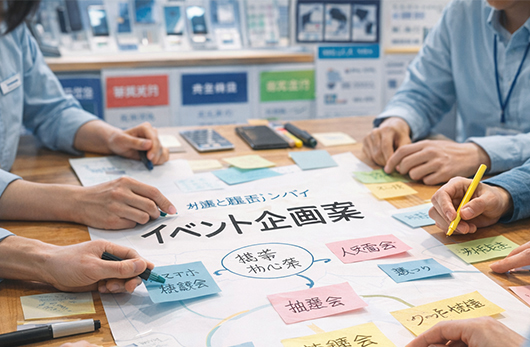 ソフトバンク、auのショップのサポートお及びイベントの企画、運営や販促支援などを行っています。